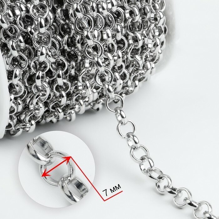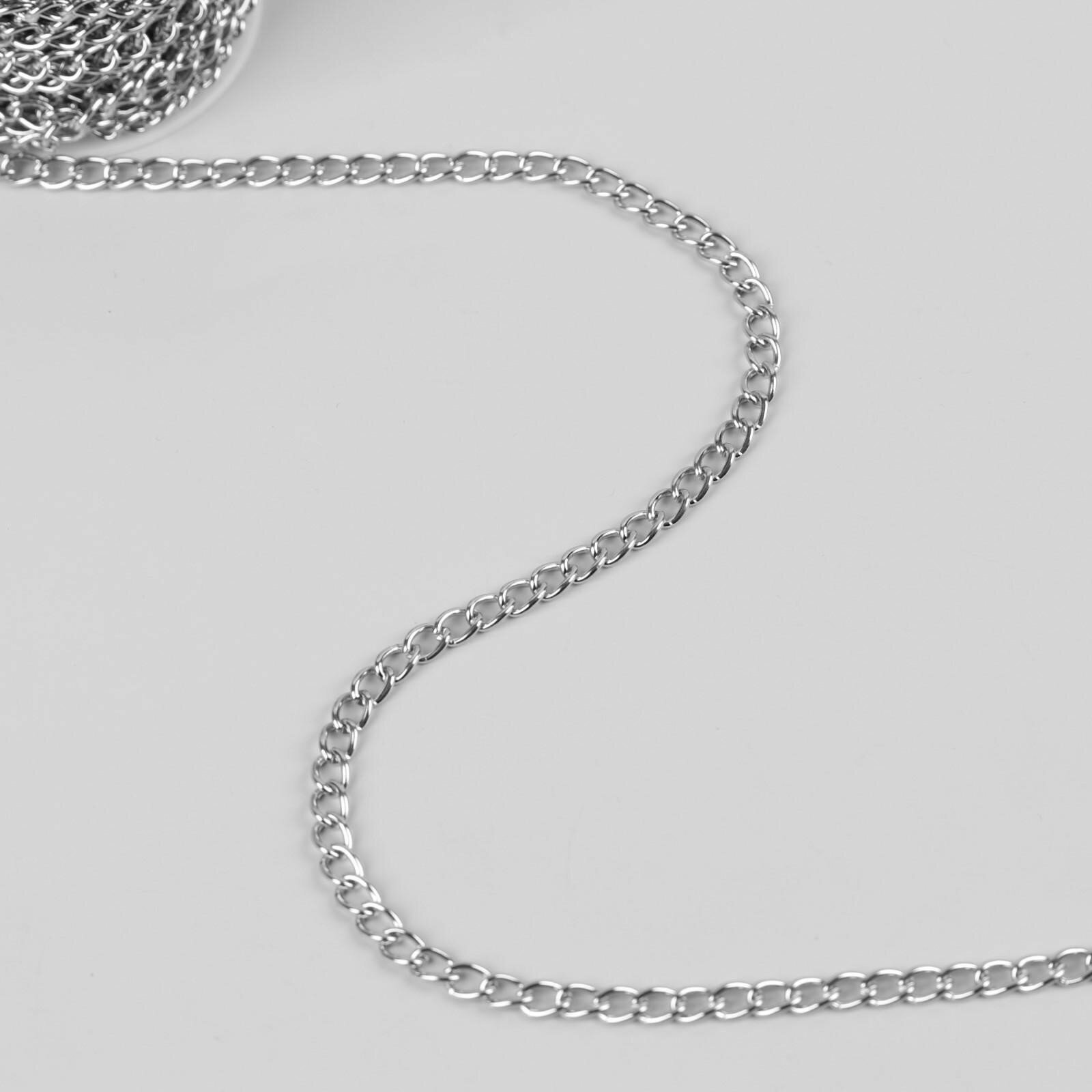 Купить Цепочка для сумки, железная, 7 × 5 мм, 10 ± 0,5 м, цвет серебряный, 4336946
