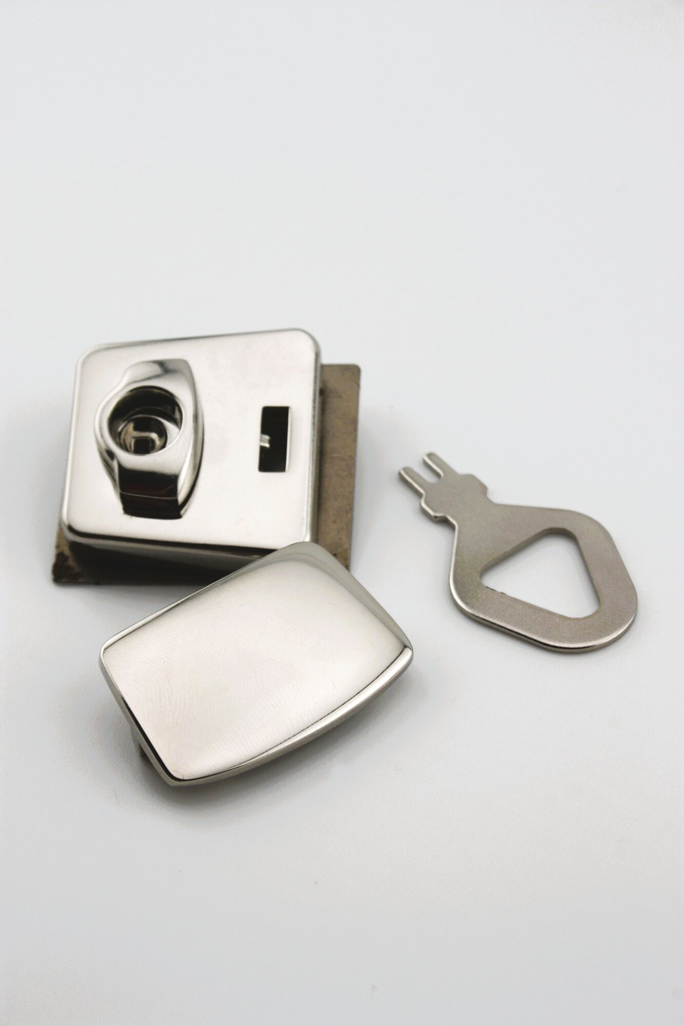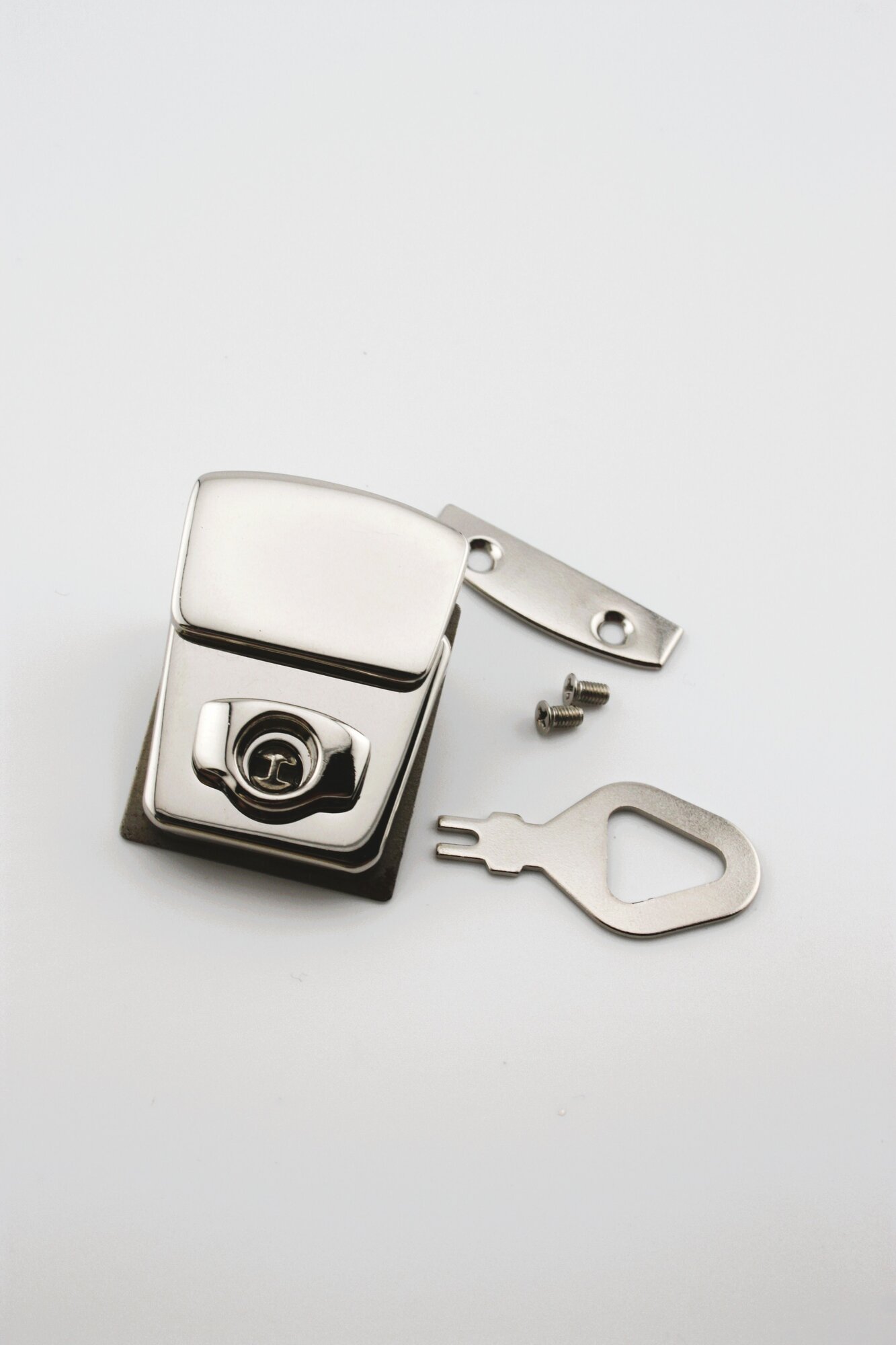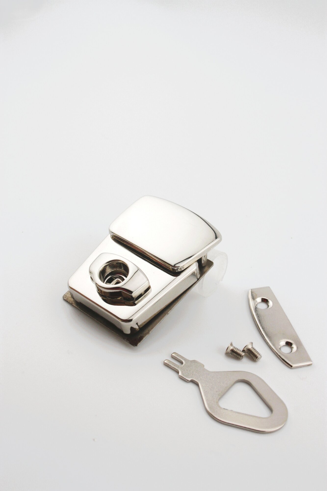 Замок цупферный застежка для сумки с ключом Alliance с креплением для установки, никель, 1шт