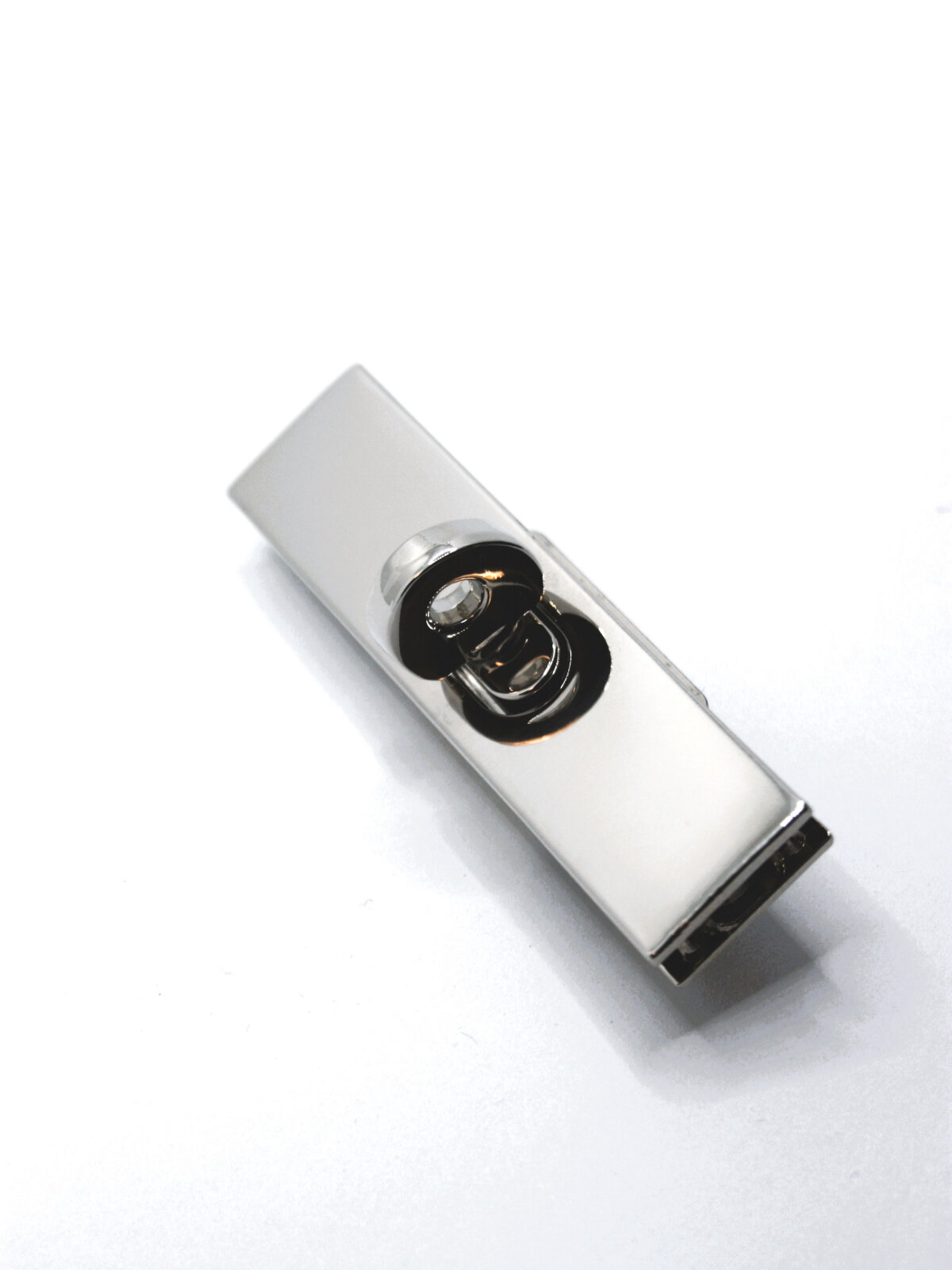 Замок вертушка, застежка поворотная для женской сумки, портфеля, рюкзака 60*40 мм Alliance, 1 шт, серебристый никель с эмалью
