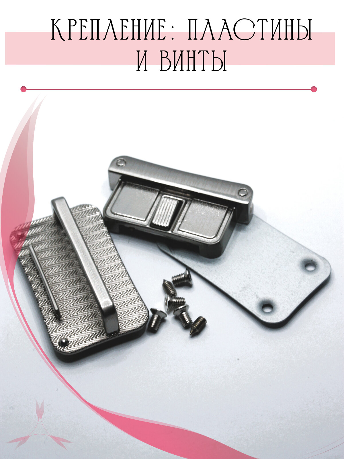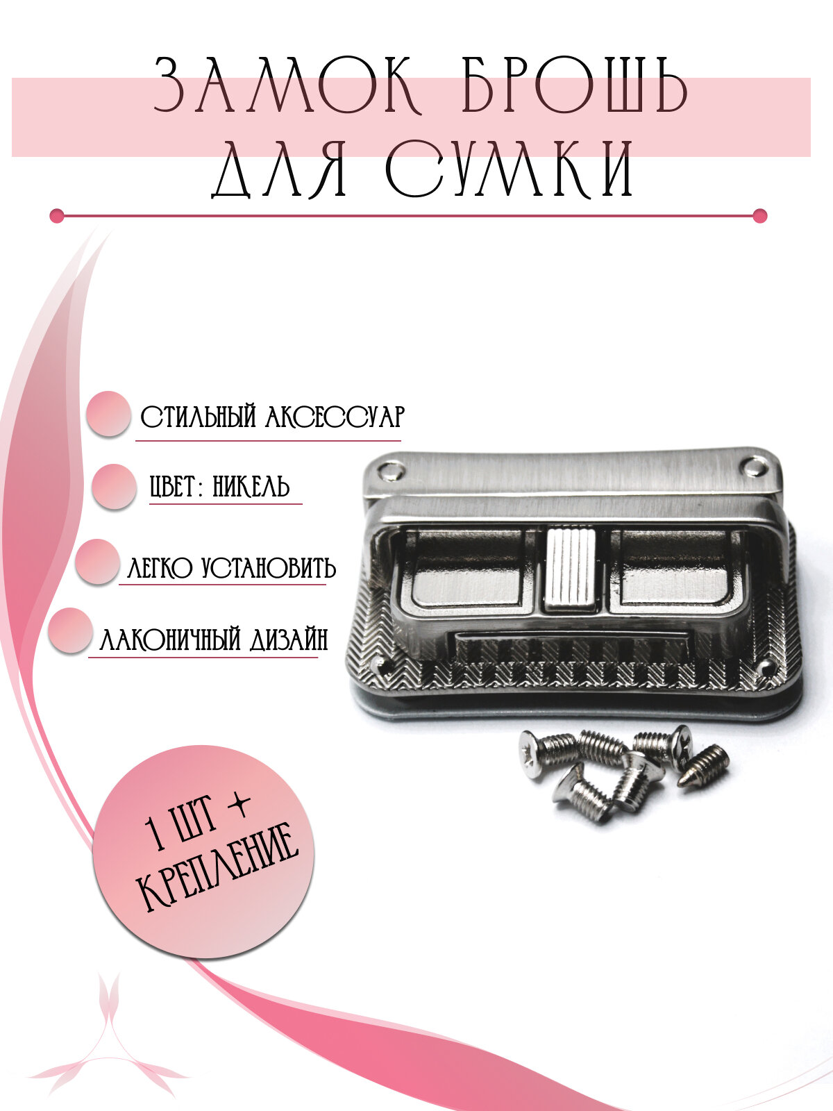Замок вертушка, застежка поворотная для женской сумки, портфеля, рюкзака 60*40 мм Alliance, 1 шт, серебристый никель с эмалью