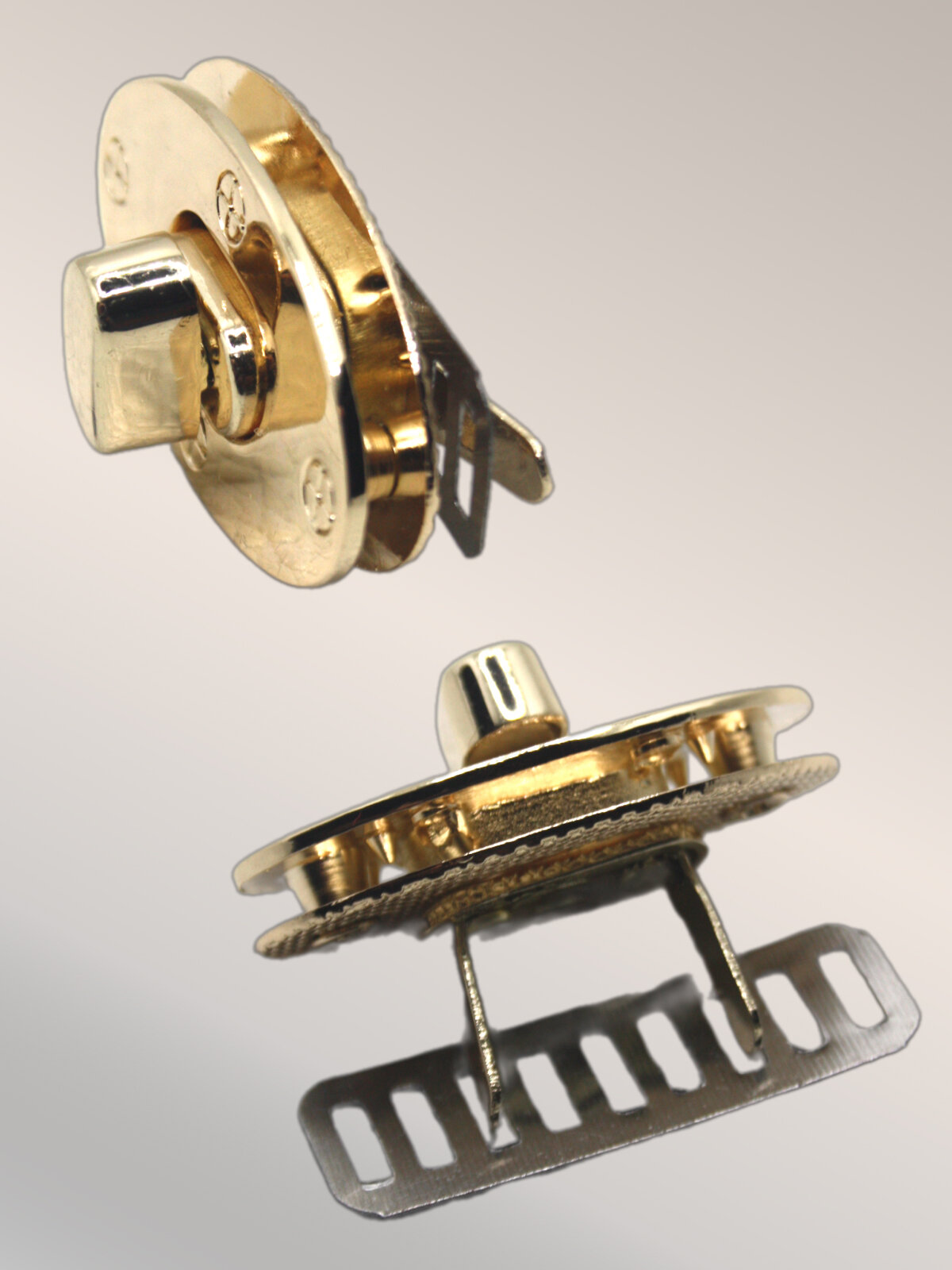Замок вертушка, застежка поворотная для женской сумки, портфеля, рюкзака 30*25 мм Alliance, 1 шт, светлое золото полированное