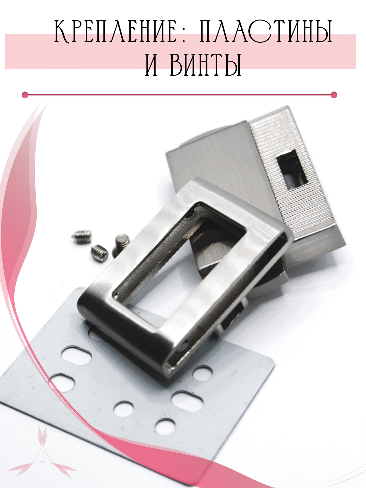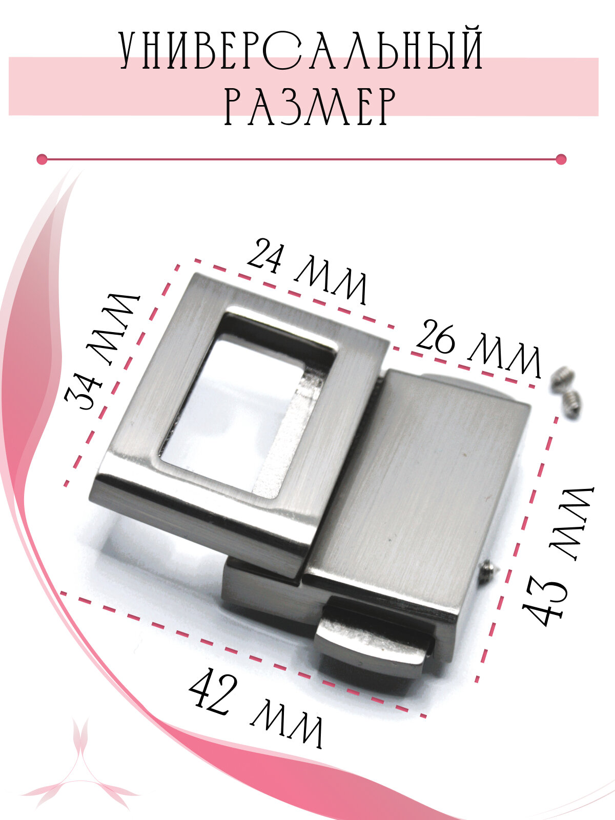 Замок вертушка, застежка поворотная для женской сумки, портфеля, рюкзака 60*40 мм Alliance, 1 шт, серебристый никель с эмалью