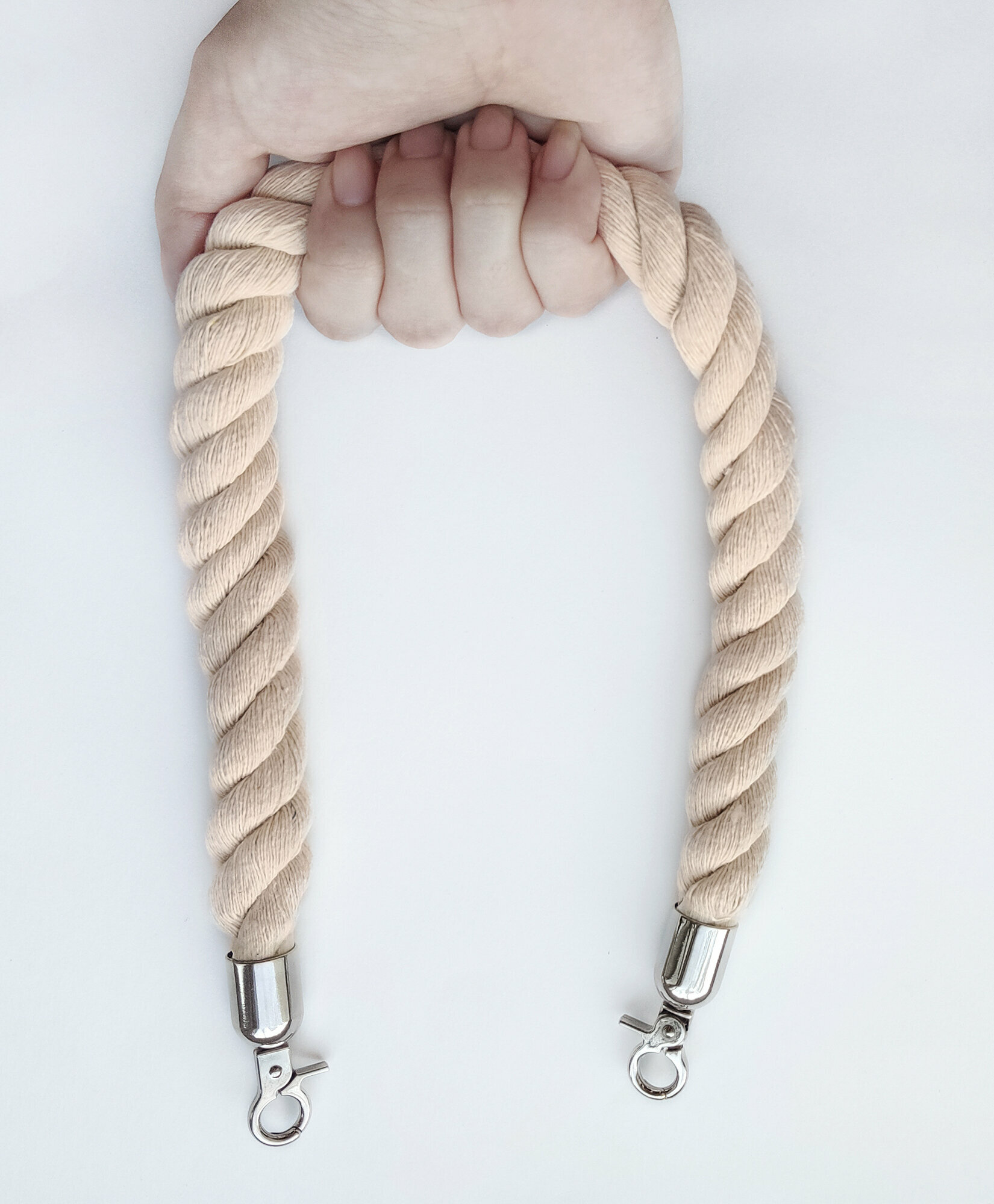 Ручка для сумки из хлопкового каната с карабинами, длина: 60 см, цвет: неокрашенный/серебристый интересное: