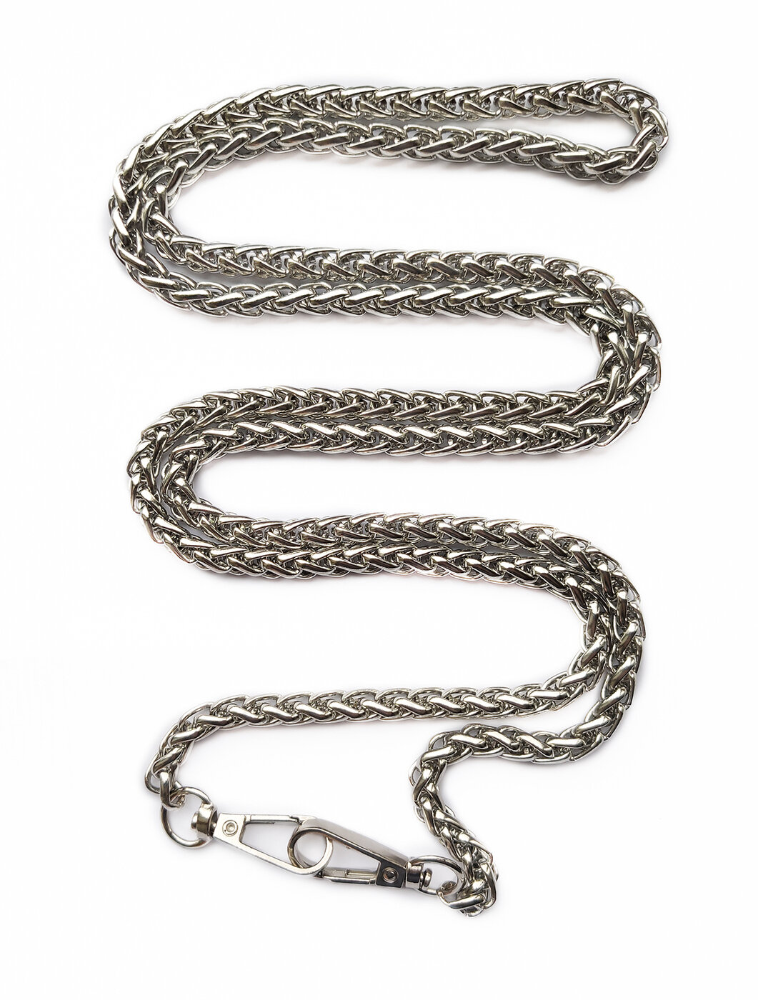 Цепочка для сумки с карабинами металлическая, длина: 120 см, звено: 7х7 мм, цвет: серебристый интересное: