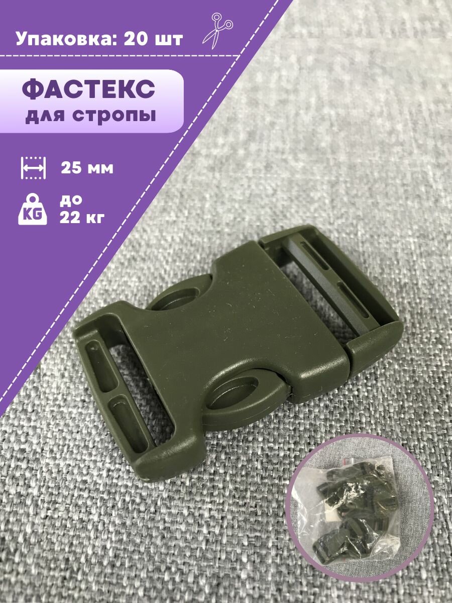 Застежка фастекс для стропы 20мм, нагрузка 15 кг, цв. хаки, упаковка 20 шт