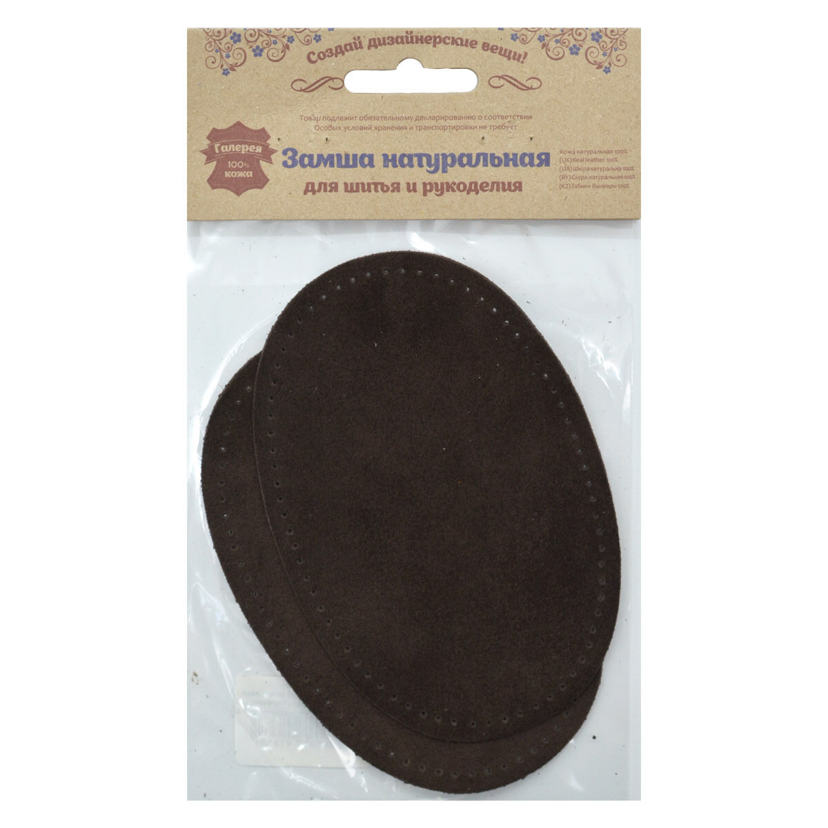 Купить Заплатка для одежды пришивная замшевая, 9*13,5 см, 2 шт, натуральная кожа, овал, темно-коричневая, Галерея
