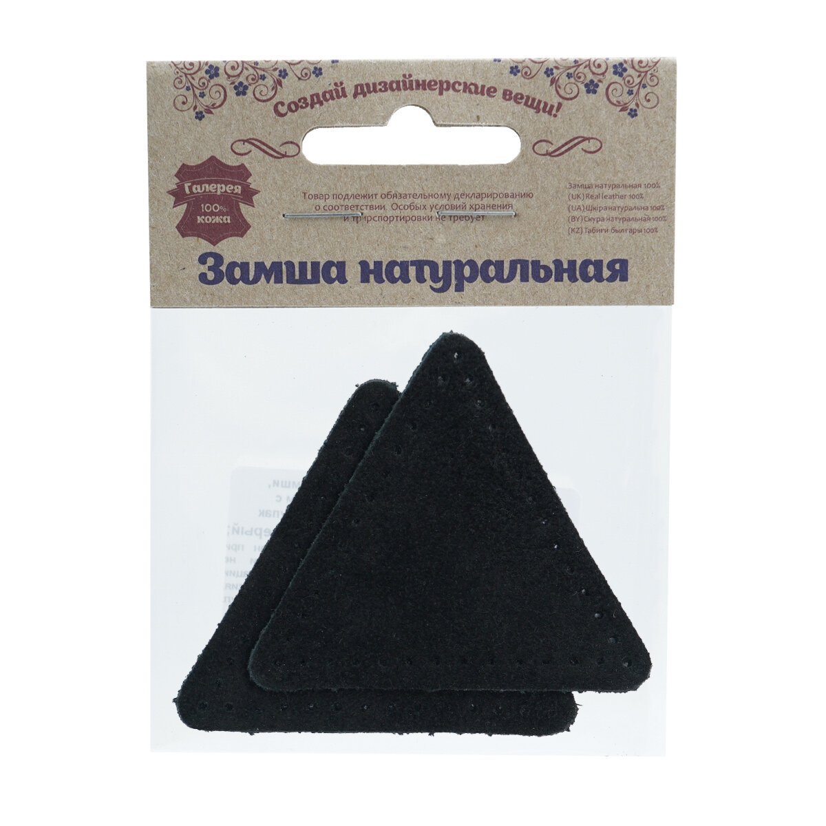 Купить 59116 Заплатки пришивные из замши, треугольник равносторонний 6см с перфорацией, 2шт/упак, 100% кожа (20 черный)