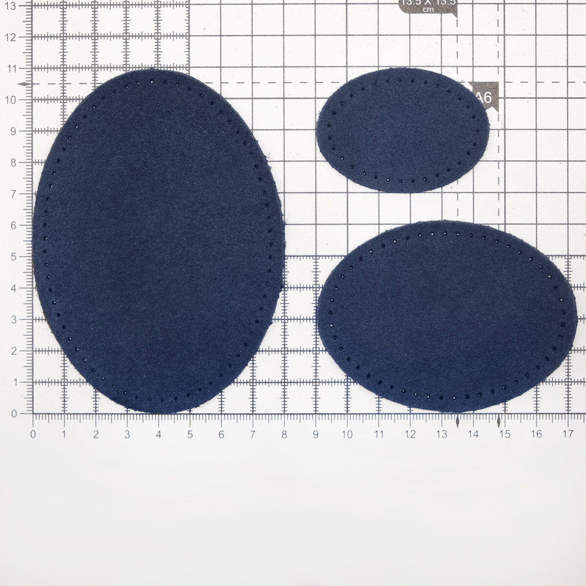 Купить 59404 Набор заплаток пришивных из замши, овал 4*5,5см, 6*8,2см, 8*10,9см, с перфорацией, 3шт/упак (22 темно-синий)