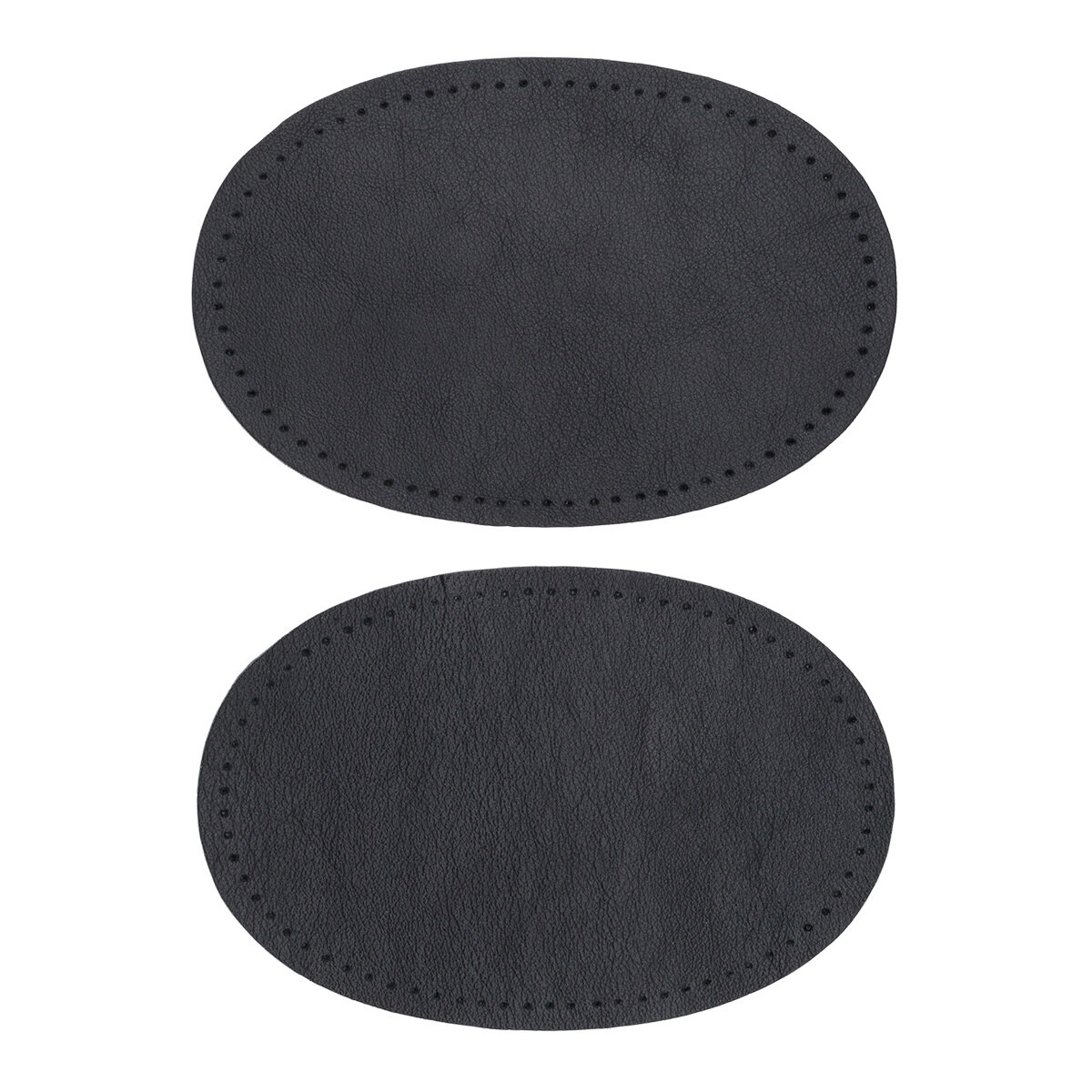 9114 Заплатки пришивные из кожи, овал 6*8,2см с перфорацией, 2шт/упак, 100% кожа (01 черный)