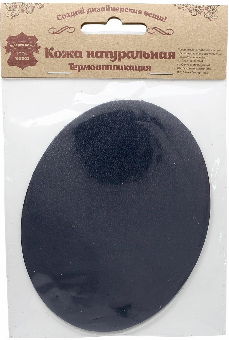 Купить 207 Заплатка термоклеевая из кожи овал средний 9,9*12,7см, 2шт в уп, 100% кожа (05 темно-синий)