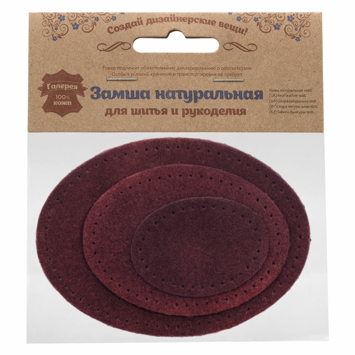 Сохранить59404 Набор заплаток пришивных из замши, овал 4*5,5см, 6*8,2см, 8*10,9см, с перфорацией, 3шт/упак (31 бордовый) интересное: