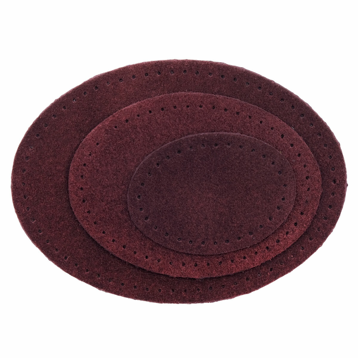 Купить 59404 Набор заплаток пришивных из замши, овал 4*5,5см, 6*8,2см, 8*10,9см, с перфорацией, 3шт/упак (31 бордовый)