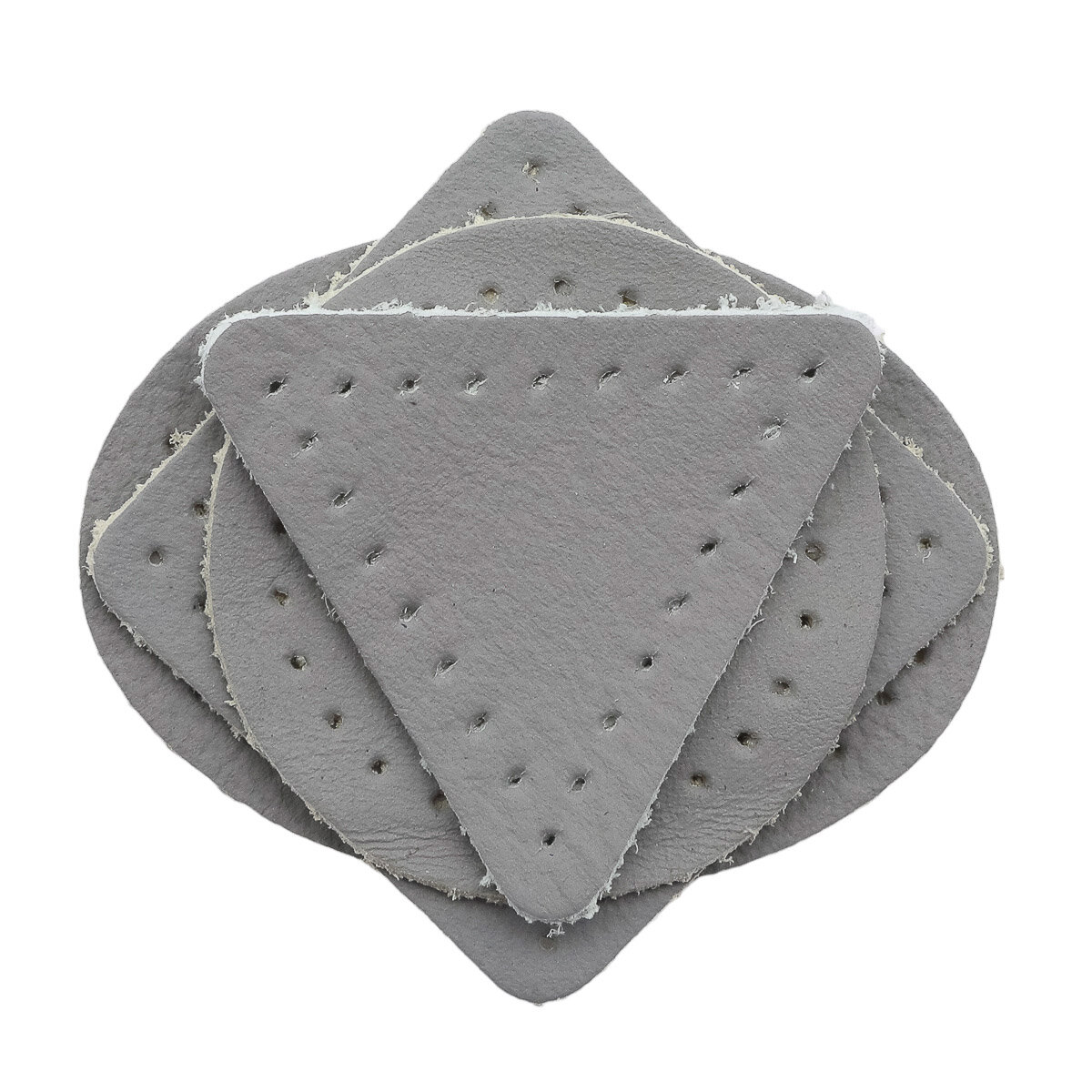 9126 Заплатки пришивные из кожи, треугольник равносторонний 8см с перфорацией, 2шт/упак, 100% кожа (07 серый)