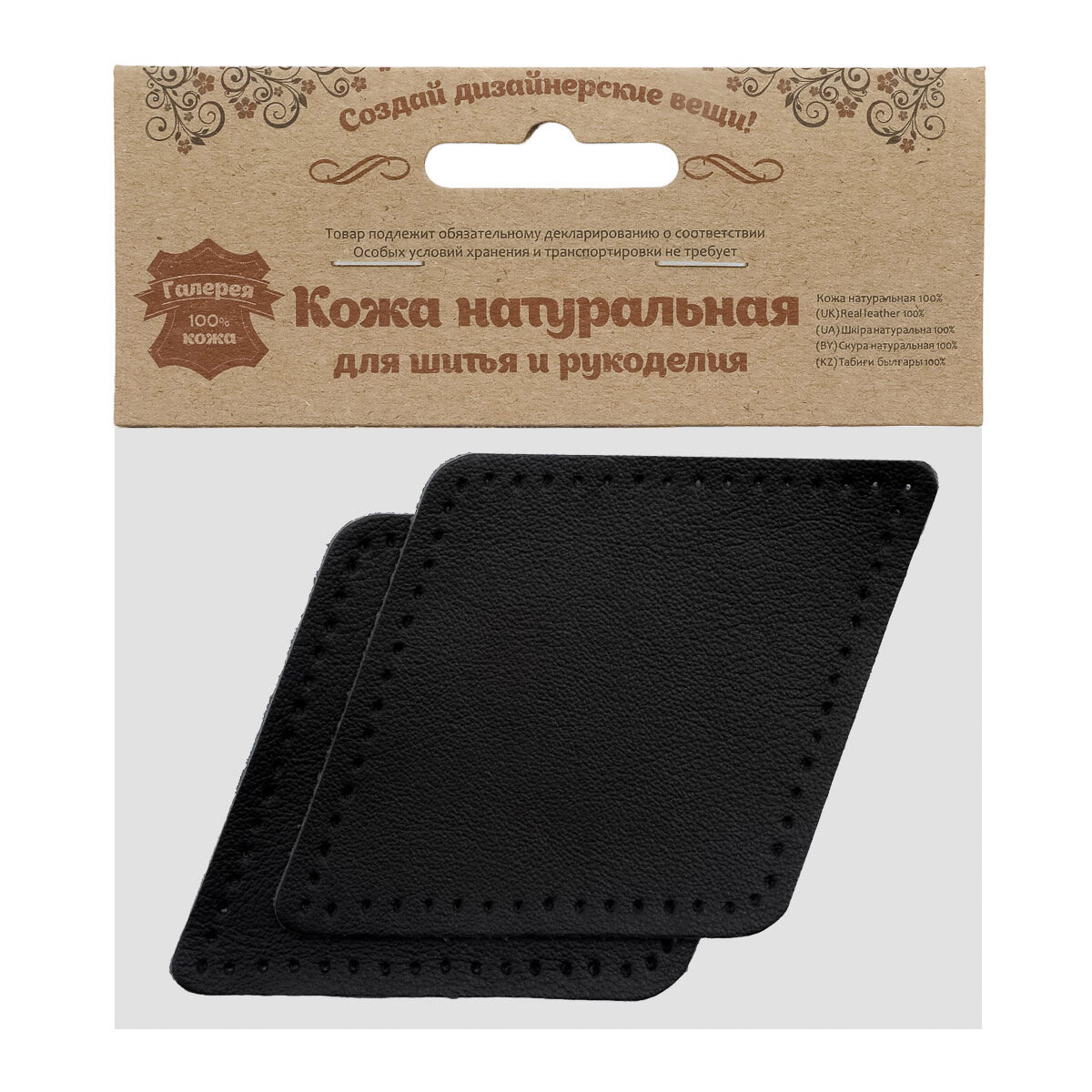 Купить 9125 Заплатки пришивные из кожи, ромб 8*11,2см с перфорацией, 2шт/упак, 100% кожа (01 черный)