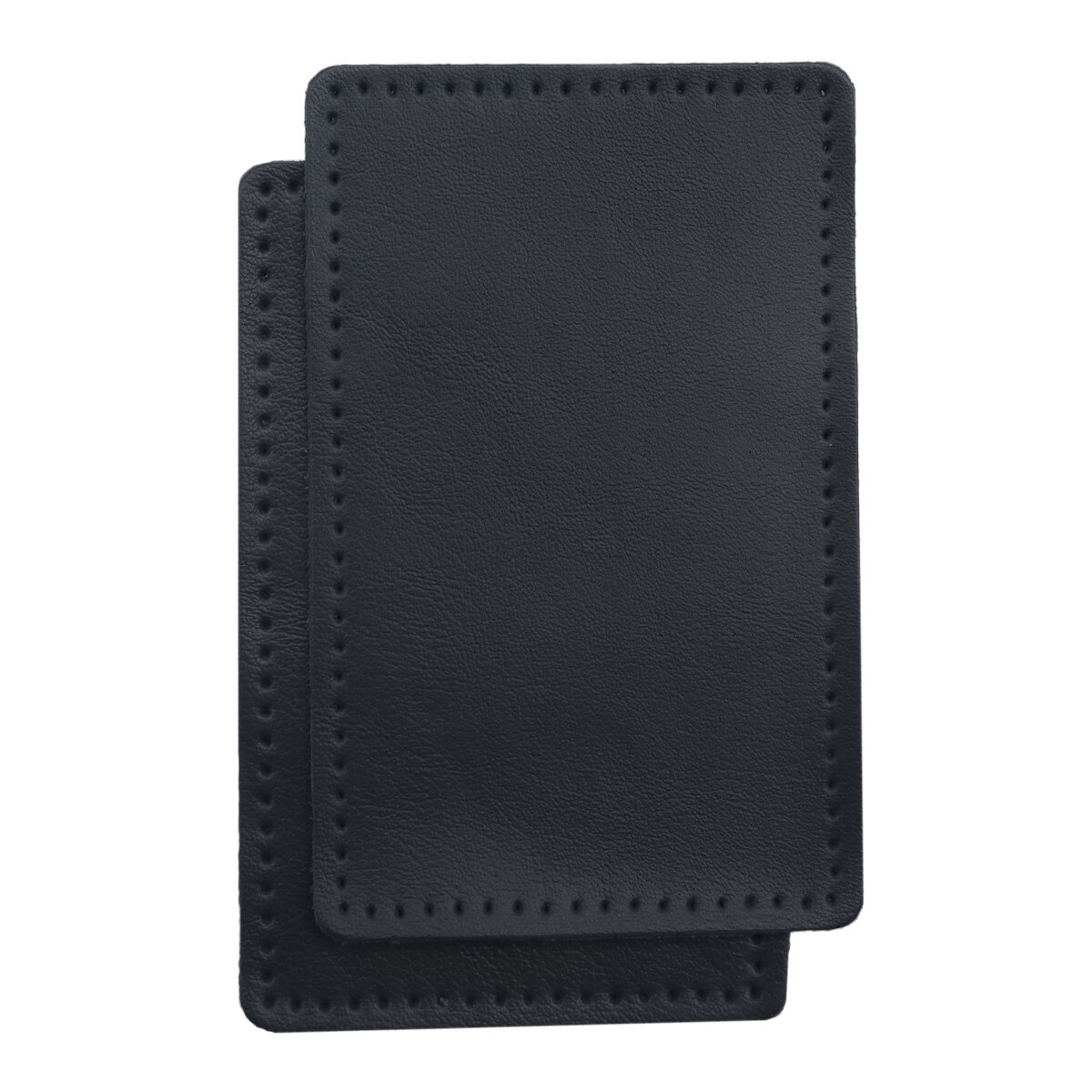 9113 Заплатки пришивные из кожи, прямоугольник 6*9,6см с перфорацией, 2шт/упак, 100% кожа (05 темно-синий)