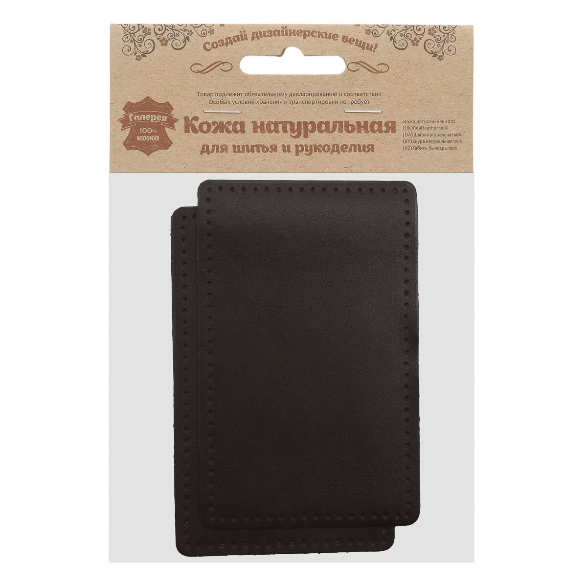 9113 Заплатки пришивные из кожи, прямоугольник 6*9,6см с перфорацией, 2шт/упак, 100% кожа (03 темно-коричневый)