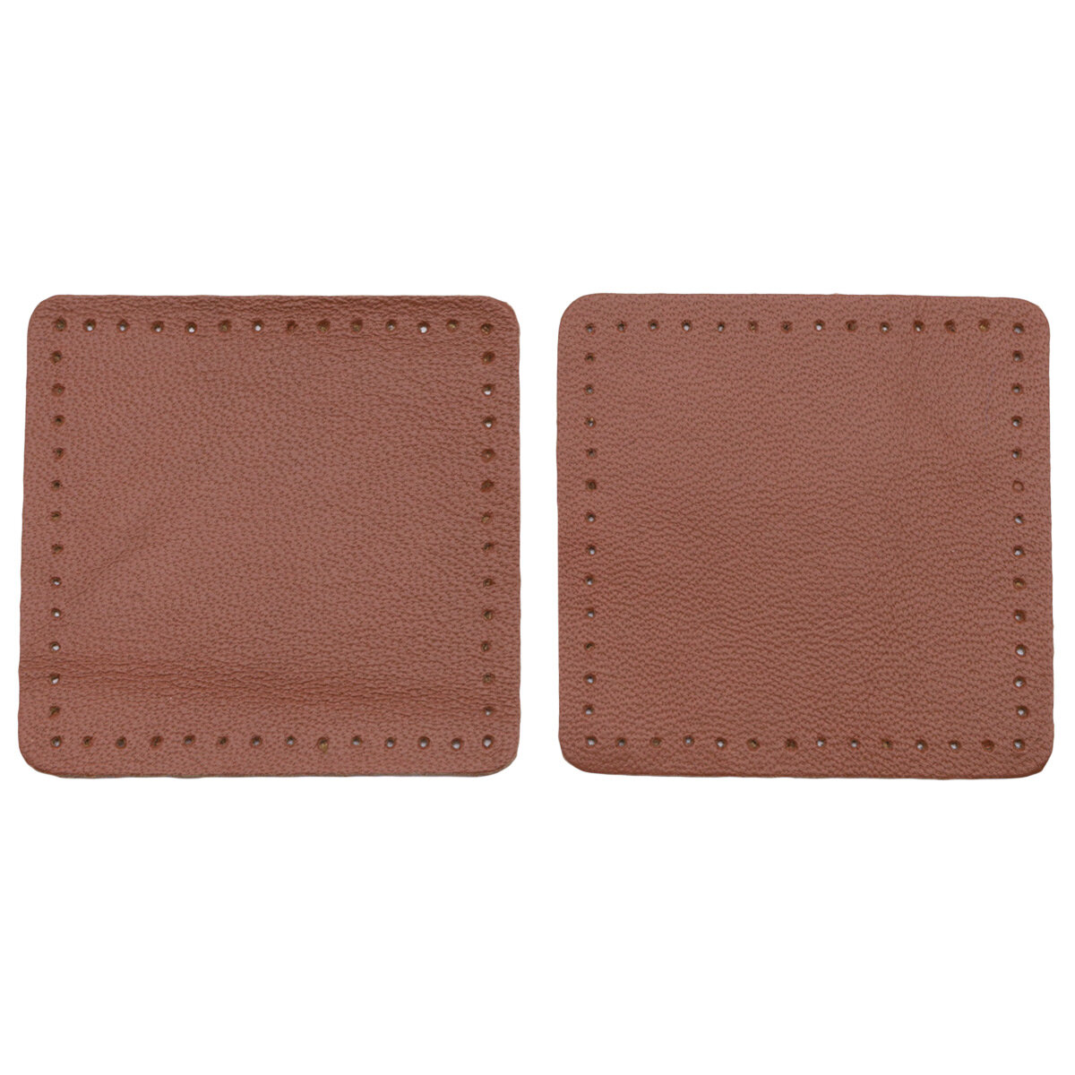 9122 Заплатки пришивные из кожи, квадрат 8см с перфорацией, 2шт/упак, 100% кожа (03 темно-коричневый)