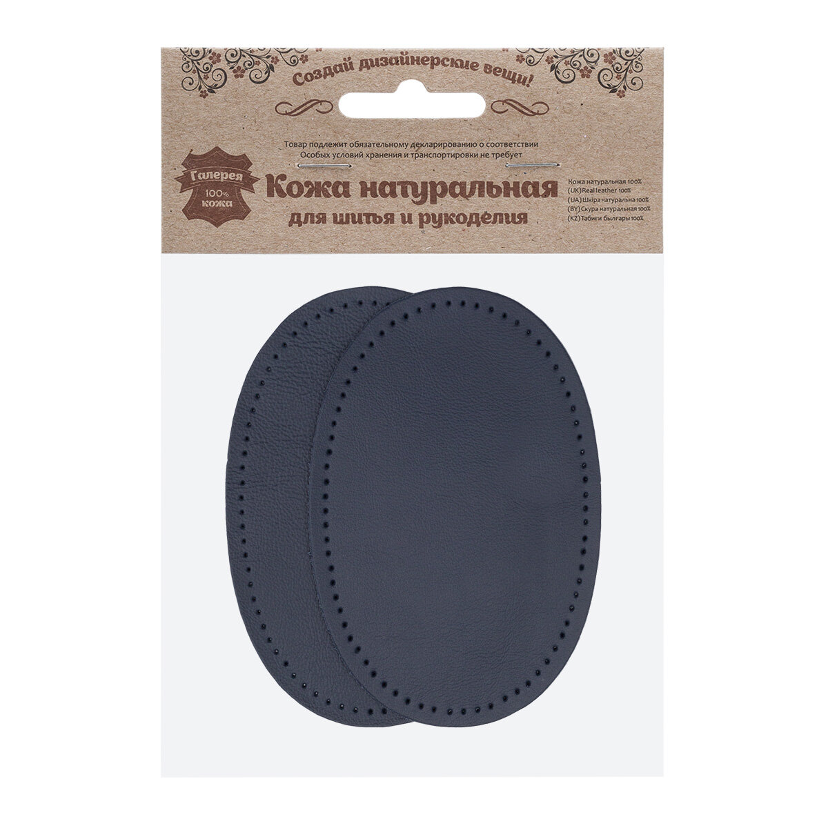 Сохранить218 Заплатка из кожи овал средний 9*13,5см с перфорацией, 2 шт (упак), 100% кожа (05 темно-синий) интересное: