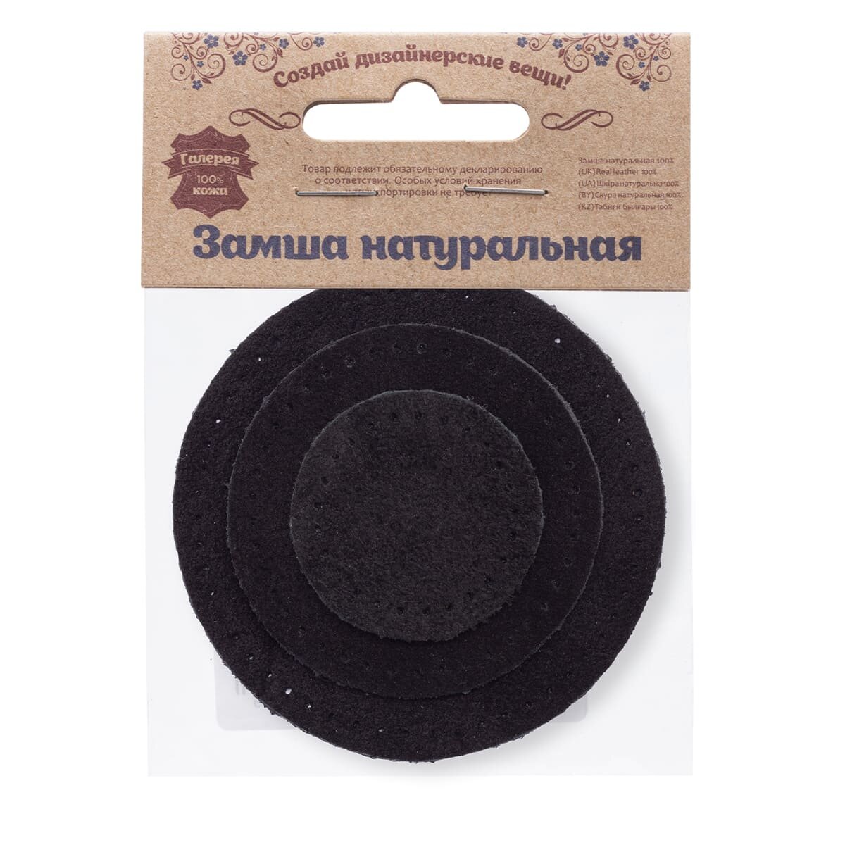 Сохранить59401 Набор заплаток пришивных из замши, круг d-4см, 6см и 8см, с перфорацией, 3шт/упак, 100% кожа (20 черный) интересное: