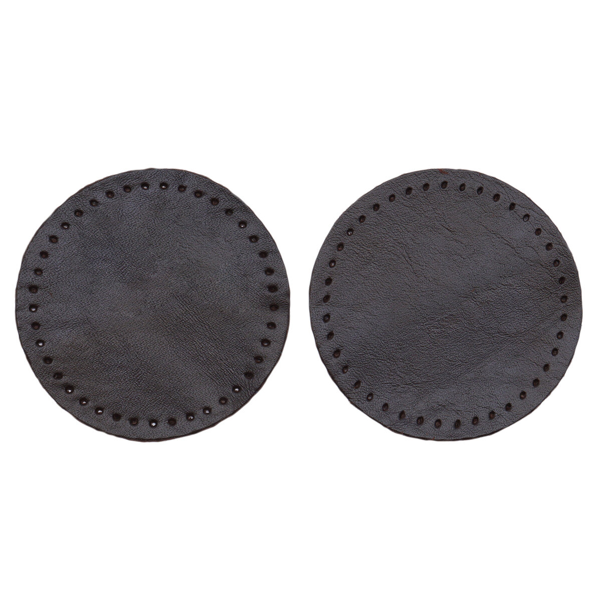 9121 Заплатки пришивные из кожи, круг d-8см с перфорацией, 2шт/упак, 100% кожа (03 темно-коричневый)