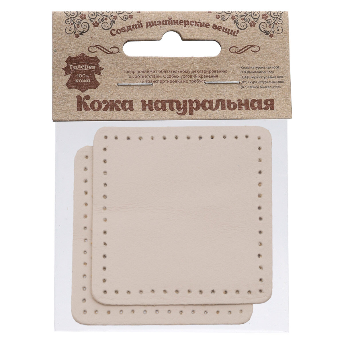 Сохранить9112 Заплатки пришивные из кожи, квадрат 6см с перфорацией, 2шт/упак, 100% кожа (06 бежевый) интересное: