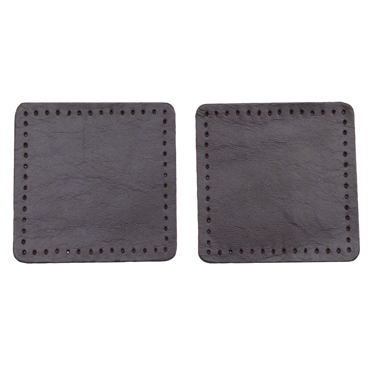 9122 Заплатки пришивные из кожи, квадрат 8см с перфорацией, 2шт/упак, 100% кожа (03 темно-коричневый)