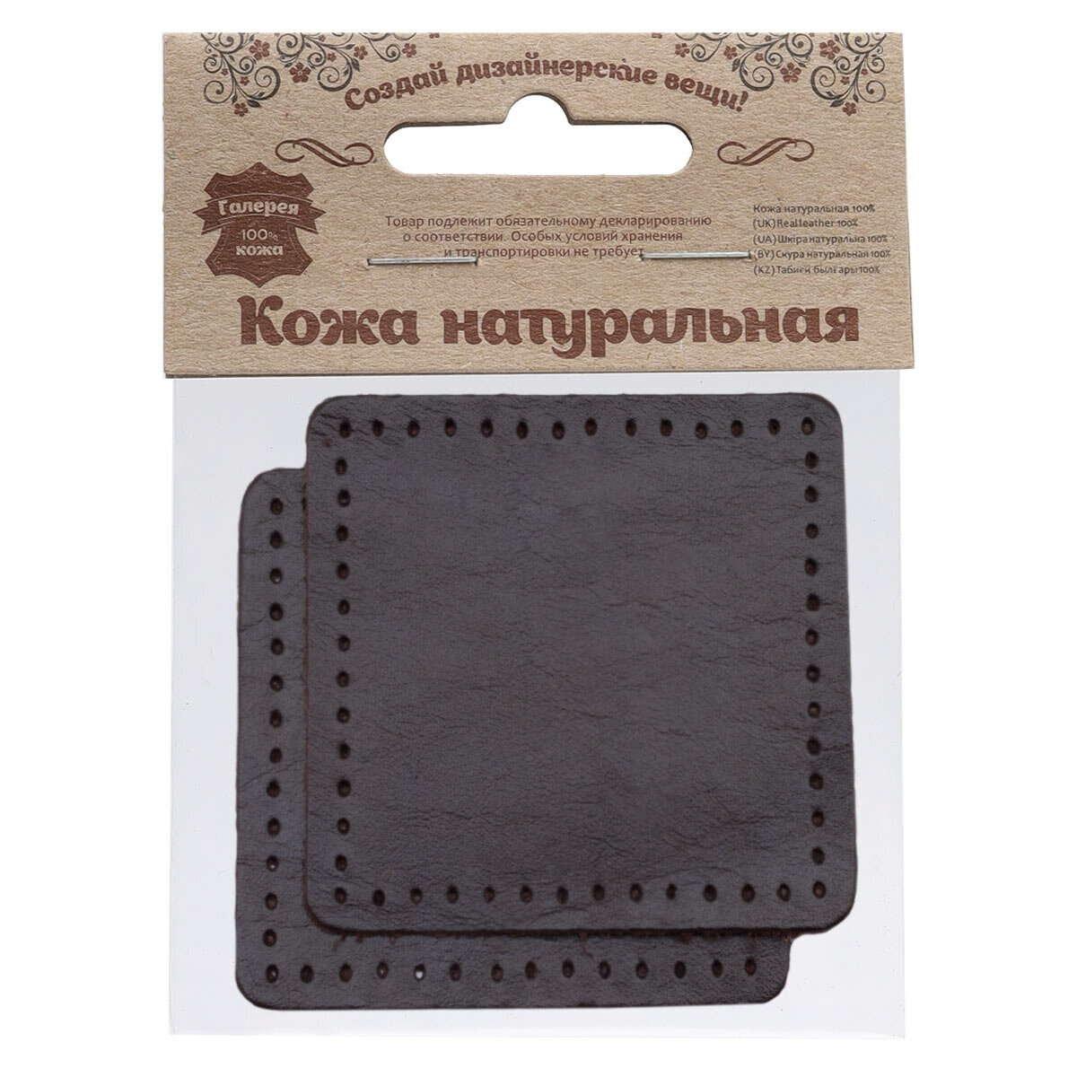 Купить 9112 Заплатки пришивные из кожи, квадрат 6см с перфорацией, 2шт/упак, 100% кожа (03 темно-коричневый)