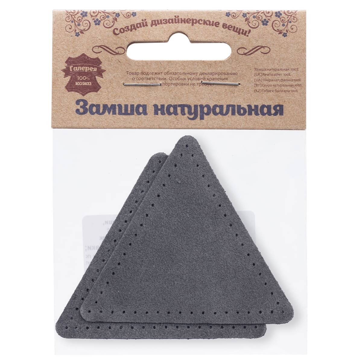 Купить 59126 Заплатки пришивные из замши, треугольник равносторонний 8см с перфорацией, 2шт/упак, 100% кожа (26 серый)