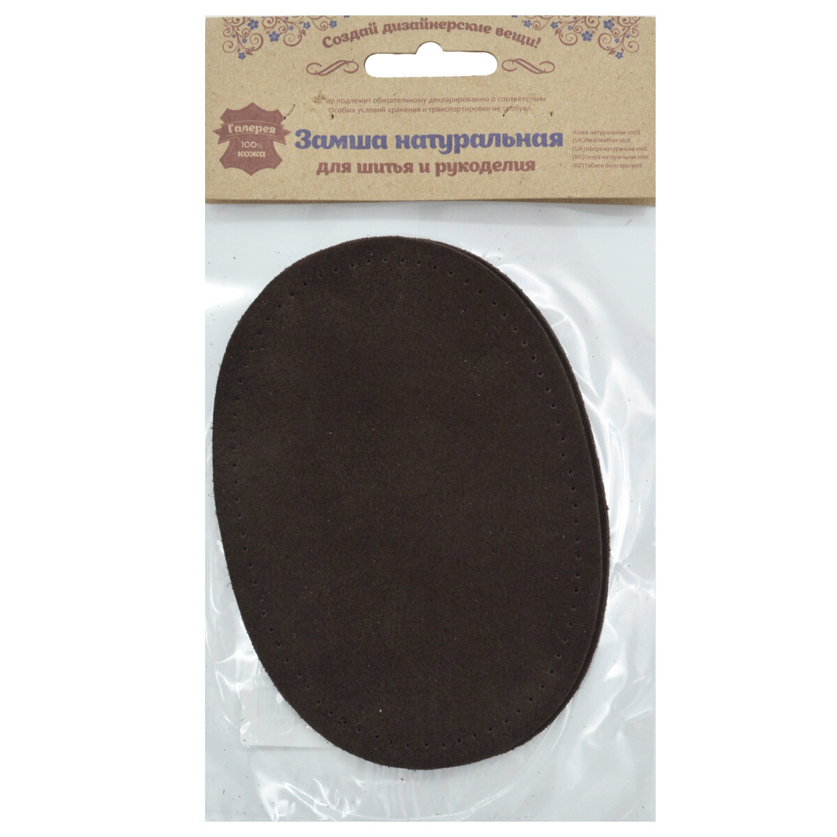 Заплатка для одежды пришивная замшевая, 10*14 см, 2 шт, натуральная кожа, овал, темно-коричневая, Галерея