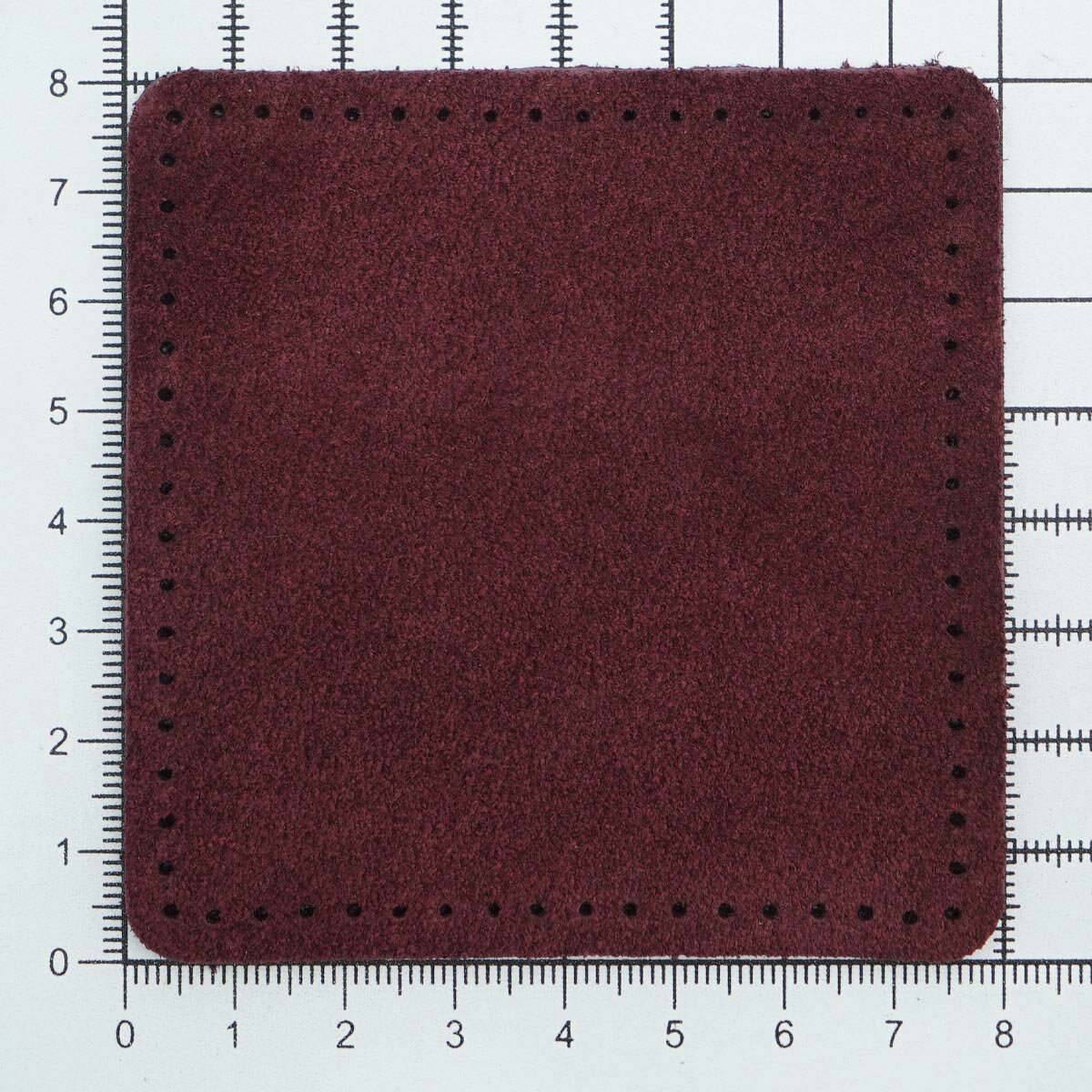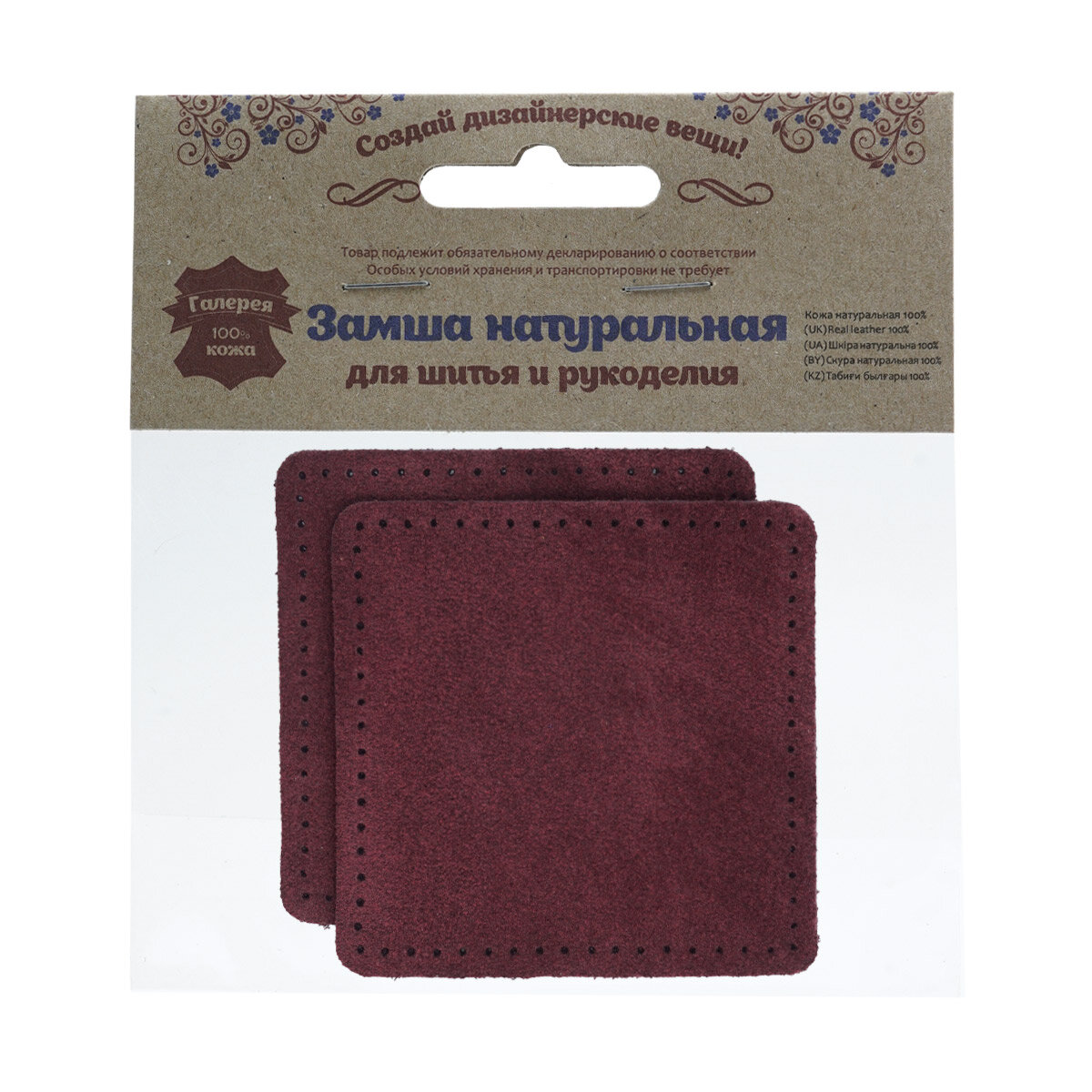 Купить 59122 Заплатки пришивные из замши, квадрат 8см с перфорацией, 2шт/упак, 100% кожа (31 бордовый)