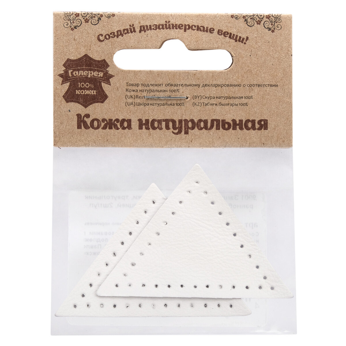 Купить 9901 Заплатки пришивные из кожи, треугольник равнобедр, стор. 5см, с перфорацией, 2шт/уп, 100% кожа (08 белый)