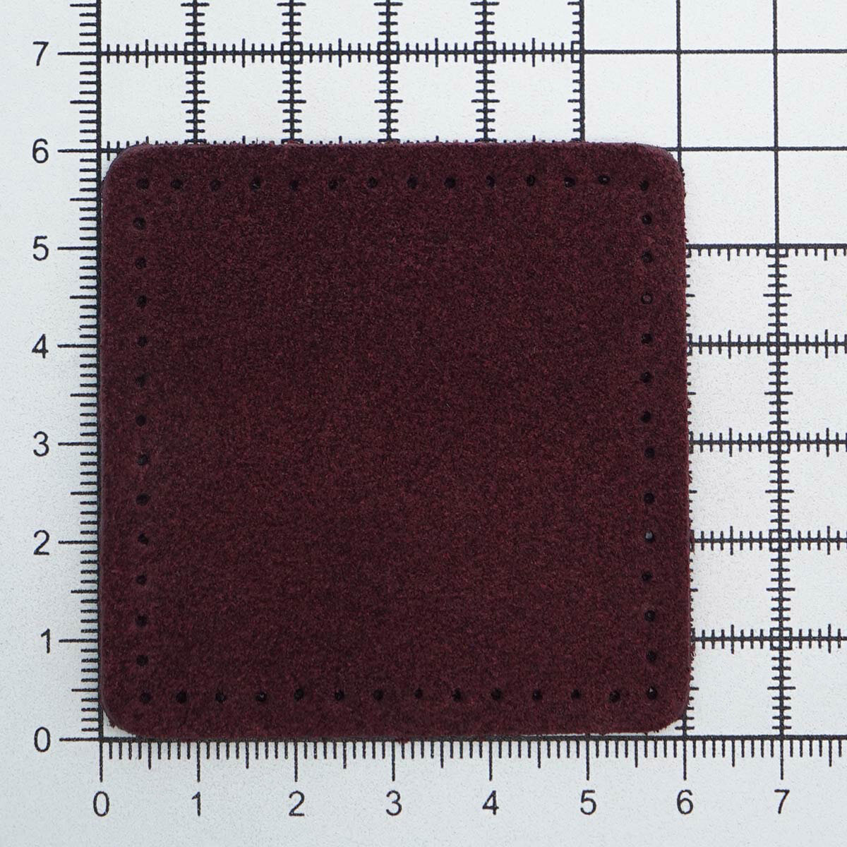 Купить 59112 Заплатки пришивные из замши, квадрат 6см с перфорацией, 2шт/упак, 100% кожа (31 бордовый)