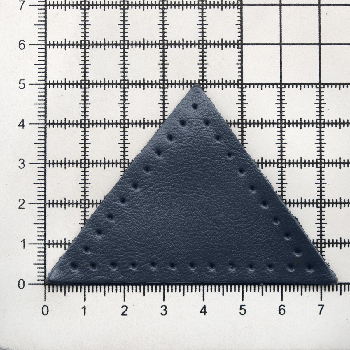 9126 Заплатки пришивные из кожи, треугольник равносторонний 8см с перфорацией, 2шт/упак, 100% кожа (05 темно-синий)