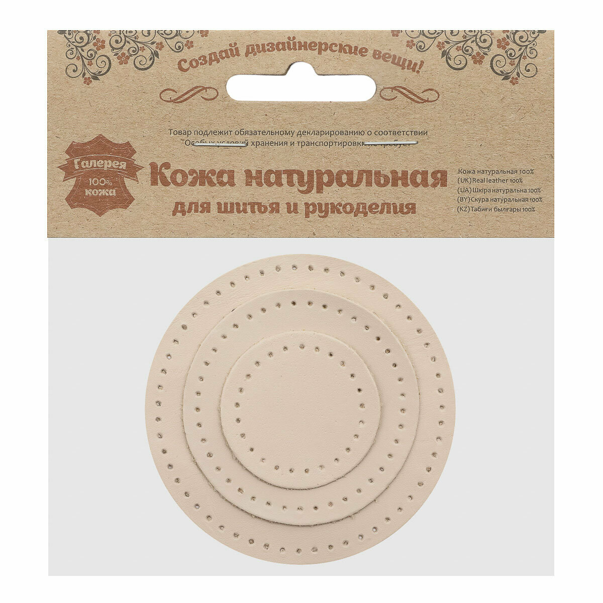 Купить 9401 Набор заплаток пришивных из кожи, круг d-4см, 6см и 8см, с перфорацией, 3шт/упак, 100% кожа (06 бежевый)