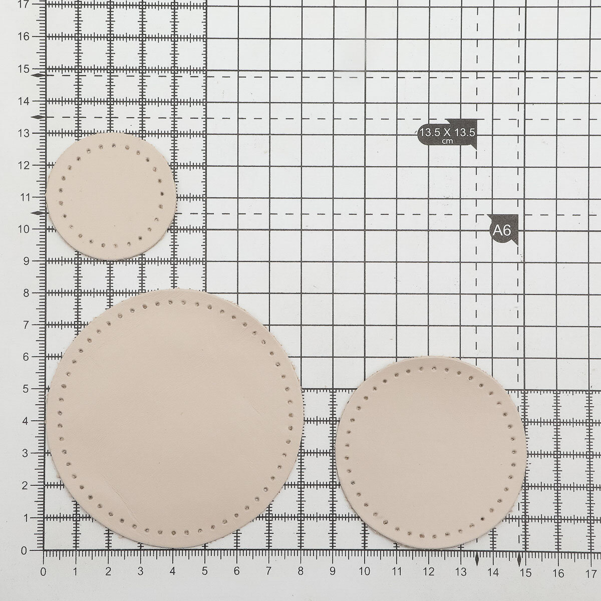 Сохранить9401 Набор заплаток пришивных из кожи, круг d-4см, 6см и 8см, с перфорацией, 3шт/упак, 100% кожа (06 бежевый) интересное: