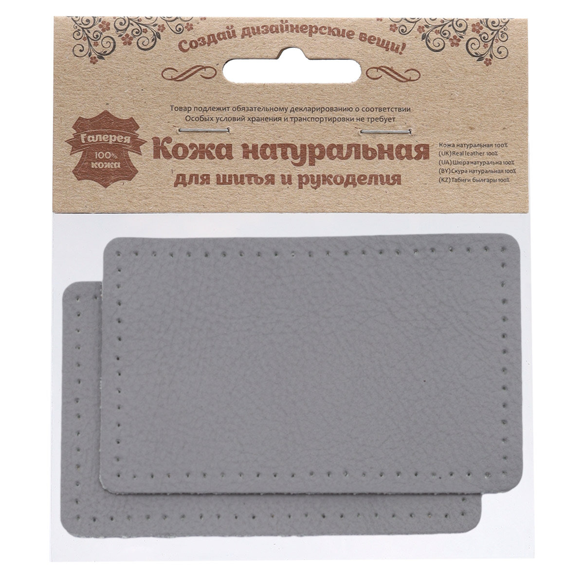 Купить 9113 Заплатки пришивные из кожи, прямоугольник 6*9,6см с перфорацией, 2шт/упак, 100% кожа (07 серый)