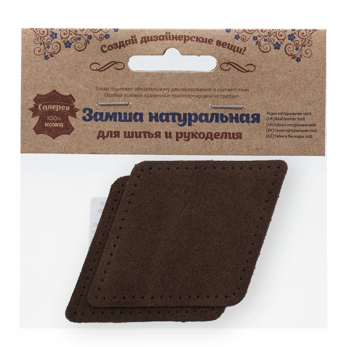 Сохранить59125 Заплатки пришивные из замши, ромб 8*11,2см с перфорацией, 2шт/упак, 100% кожа (21 темно-коричневый) интересное: