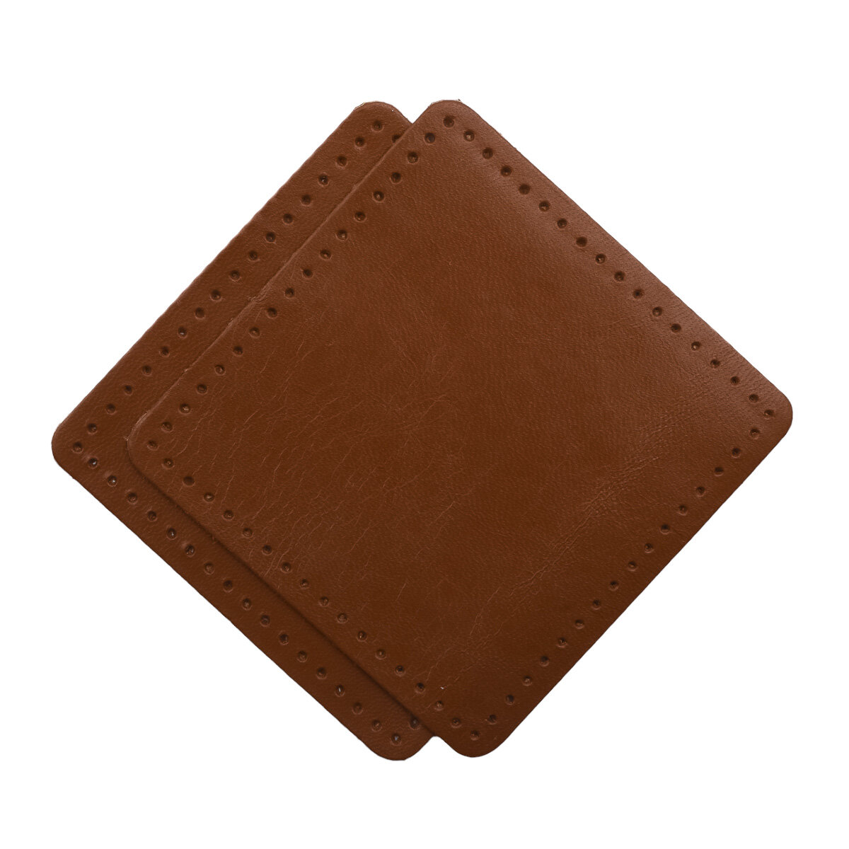 Купить 9122 Заплатки пришивные из кожи, квадрат 8см с перфорацией, 2шт/упак, 100% кожа (02 светло-коричневый)