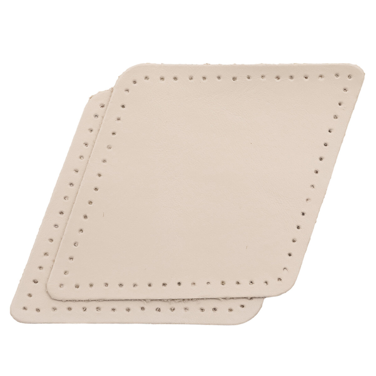 9112 Заплатки пришивные из кожи, квадрат 6см с перфорацией, 2шт/упак, 100% кожа (06 бежевый)