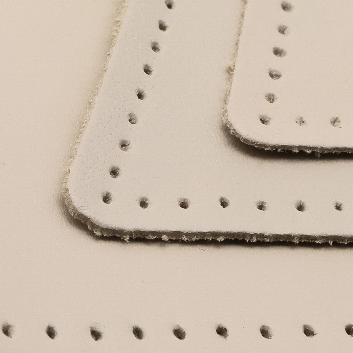 9743 Набор заплаток пришивных из кожи, круг, квадрат, треугольник, овал 8см, с перфорацией, 4шт/упак (06 бежевый)