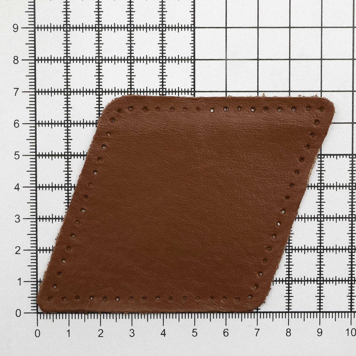 9125 Заплатки пришивные из кожи, ромб 8*11,2см с перфорацией, 2шт/упак, 100% кожа (03 темно-коричневый)