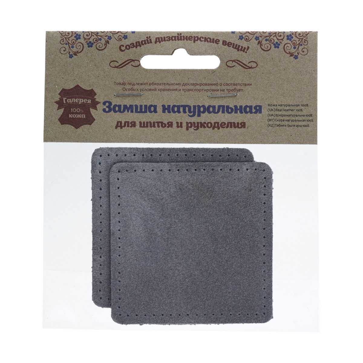 Сохранить59122 Заплатки пришивные из замши, квадрат 8см с перфорацией, 2шт/упак, 100% кожа (26 серый) интересное:
