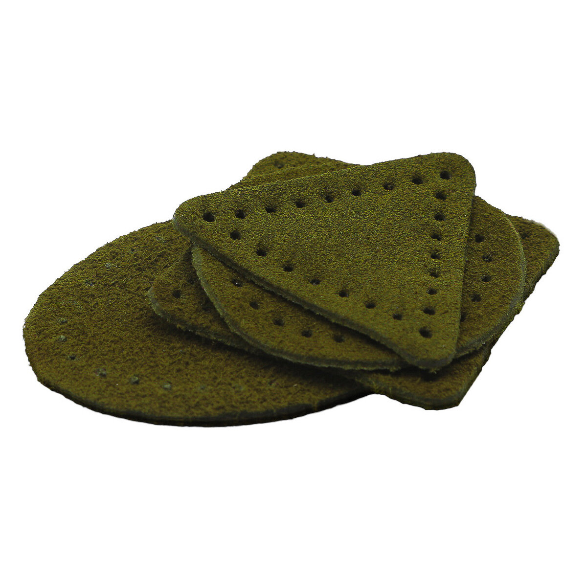 59902 Заплатки пришивные из замши, треугольник равнобедр, стор.6см, с перфорацией, 2шт/уп, 100%кожа (33 хаки)