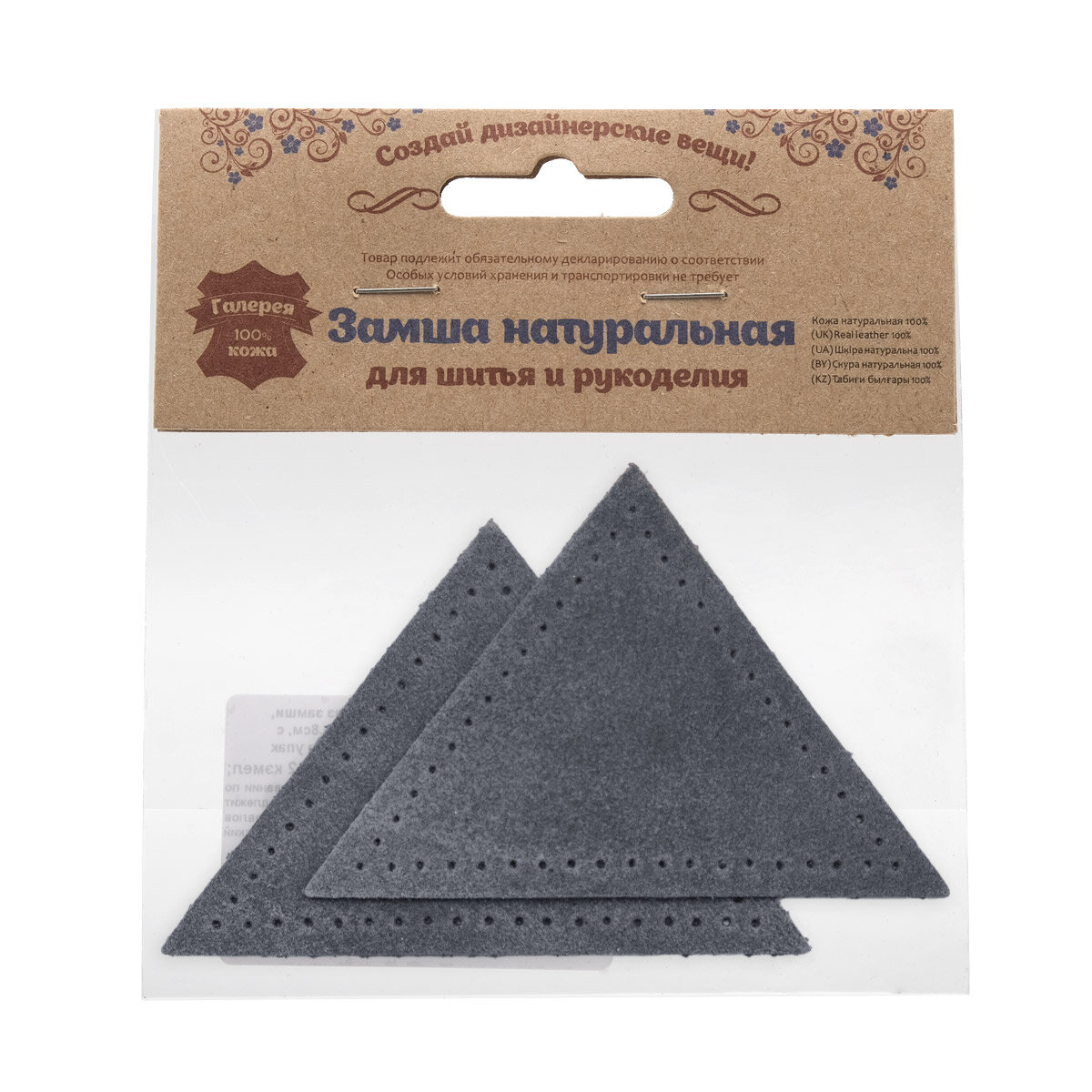 Купить 59903 Заплатки пришивные из замши, треугольник равнобедр, стор.8см, с перфорацией, 2шт/уп, 100%кожа (26 серый)