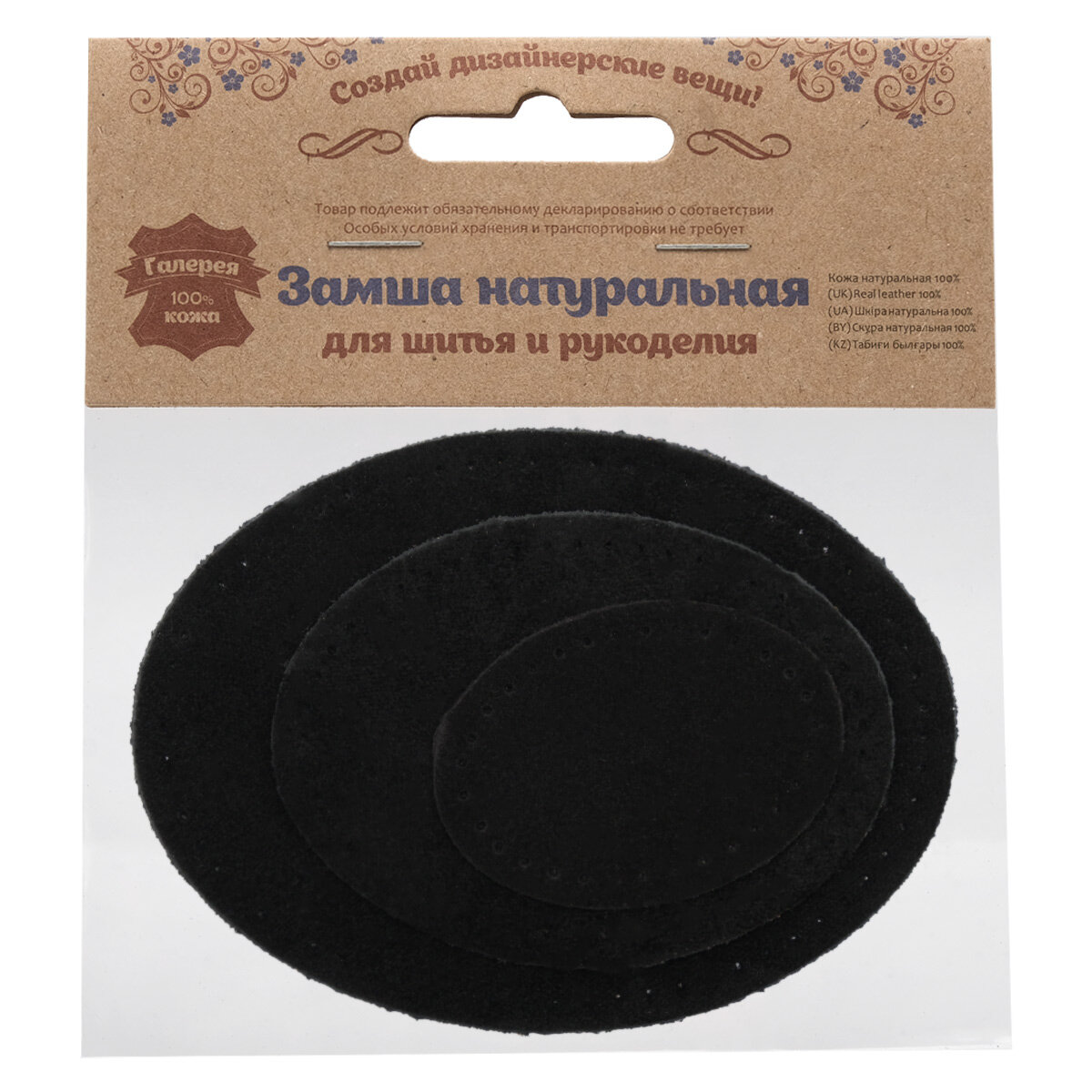 Купить 59404 Набор заплаток пришивных из замши, овал 4*5,5см, 6*8,2см, 8*10,9см, с перфорацией, 3шт/упак (20 черный)