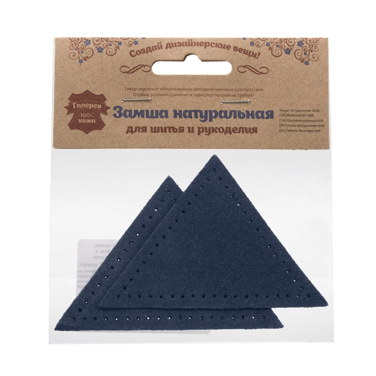 59116 Заплатки пришивные из замши, треугольник равносторонний 6см с перфорацией, 2шт/упак, 100% кожа (22 темно-синий)