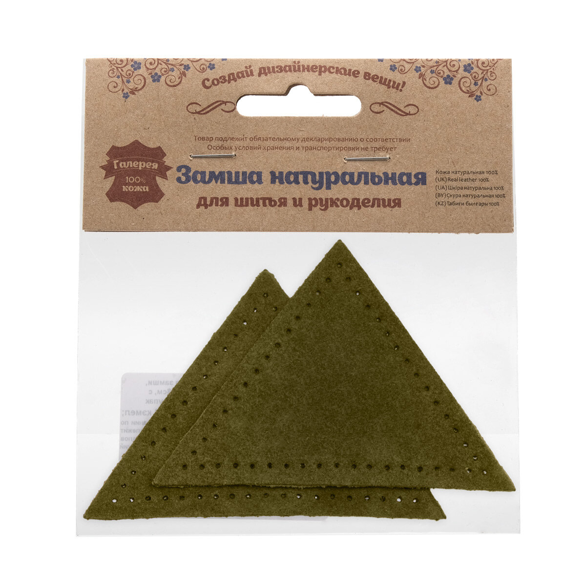 Купить 59903 Заплатки пришивные из замши, треугольник равнобедр, стор.8см, с перфорацией, 2шт/уп, 100%кожа (33 хаки)