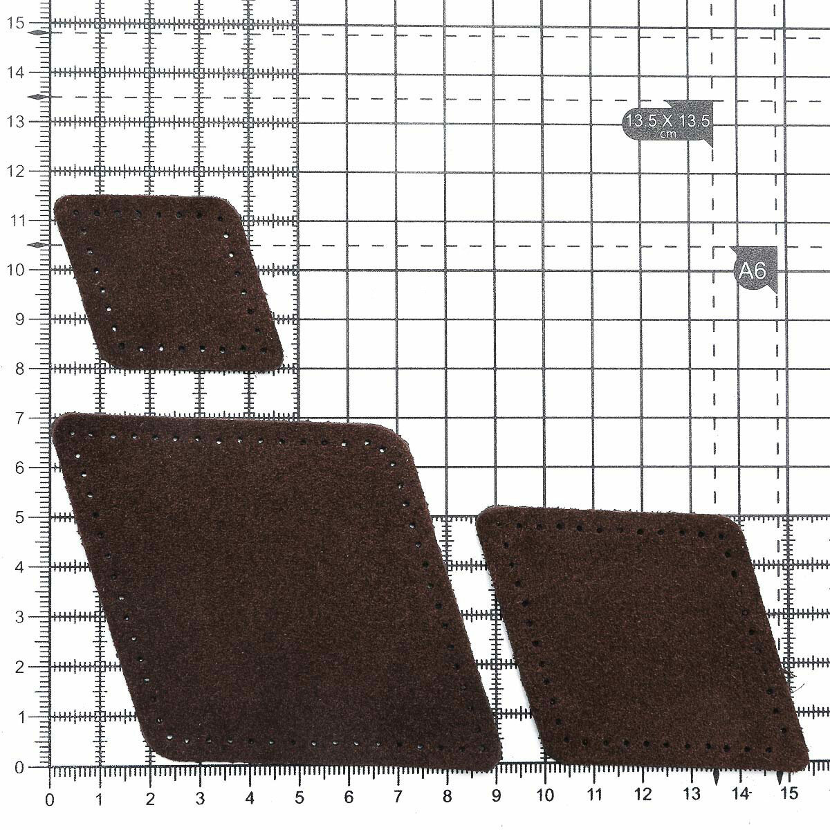 Купить 59405 Набор заплаток пришивных из замши, ромб 4*5,6см, 6*8,4см, 8*11,2см, с перфорацией, 3шт/упак (21 темно-коричневый)