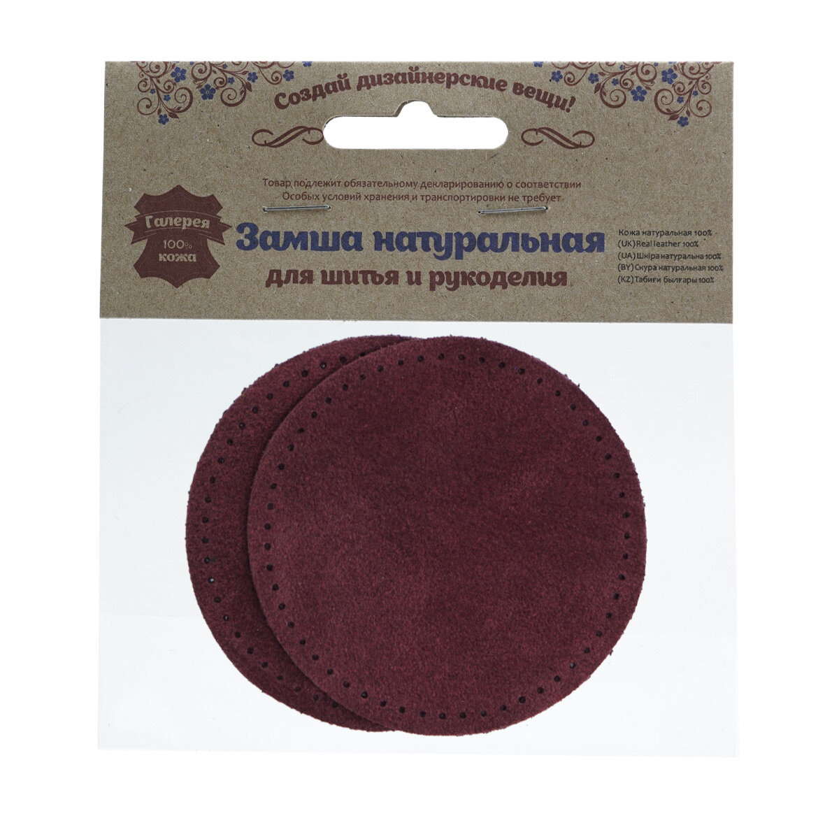 Сохранить59121 Заплатки пришивные из замши, круг d-8см с перфорацией, 2шт/упак, 100% кожа (31 бордовый) интересное:
