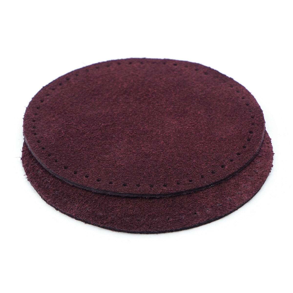 Купить 59121 Заплатки пришивные из замши, круг d-8см с перфорацией, 2шт/упак, 100% кожа (31 бордовый)